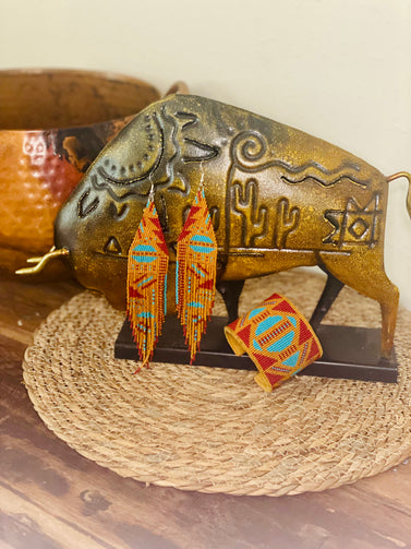 Earrings ~6 1/2 inches with matching beaded leather cuff.