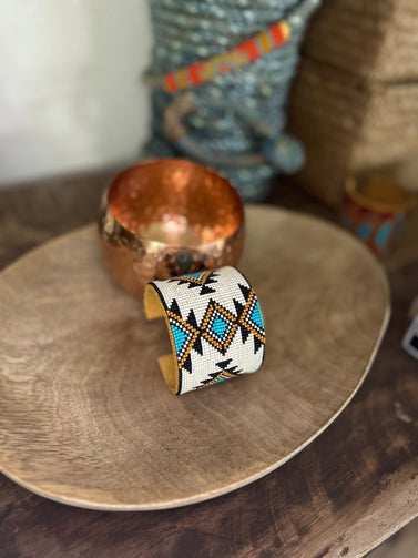 Adjustable Bracelet with leather lining. Width ~ 2 inches